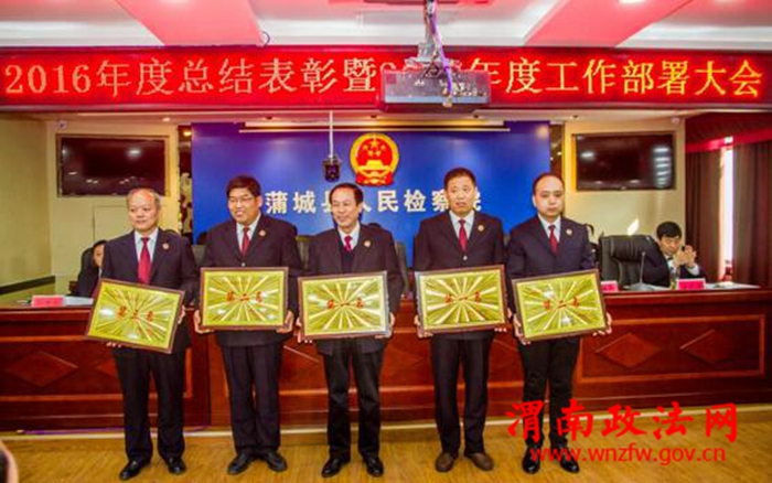 会上,蒲城县人民检察院党组副书记、副检察长谢全民受检察长闫永江委托对2016年各项检察工作进行了全面总结,肯定了成绩,提出了建议。党组成员、副检察长索保岗,党组成员、副检察长刘建明,党组成员、副检察长安铁海分别宣读了省、市、县级表彰文件和院党组会议决定,对工作中涌现出来的5个先进科室和9名先进个人、20名爱岗敬业模范、13名检察辅助人员进行了表彰。