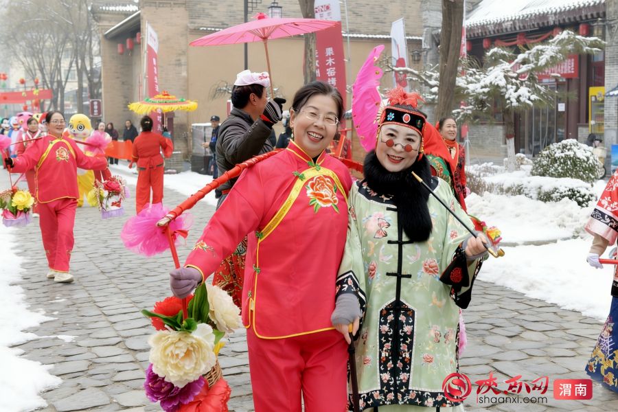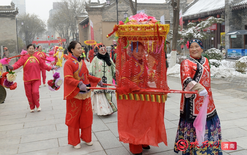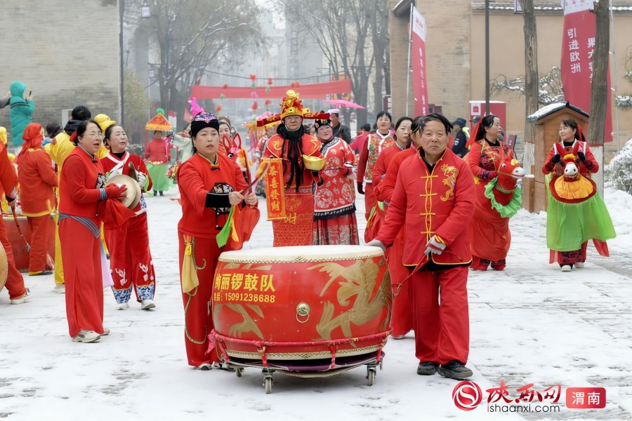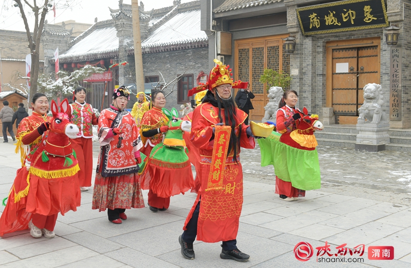坐落于蒲城老城的槐院里历史文化街区,是全县重点打造的文旅融合示范区。这里不仅汇集了清代考院、王鼎故居、杨虎城将军纪念馆等历史人文景点,更因其“因‘马’栽槐”的传说而别具风致。新年雪后,一场以“古韵槐风 文化贺新岁”为主题的民俗展演在这里拉开帷幕,为古老街巷注入了鲜活的热闹气息。