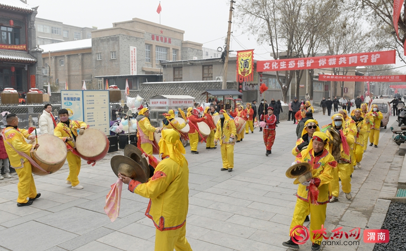 蒲城槐院里历史文化街区锣鼓表演。记者 杨大君 摄