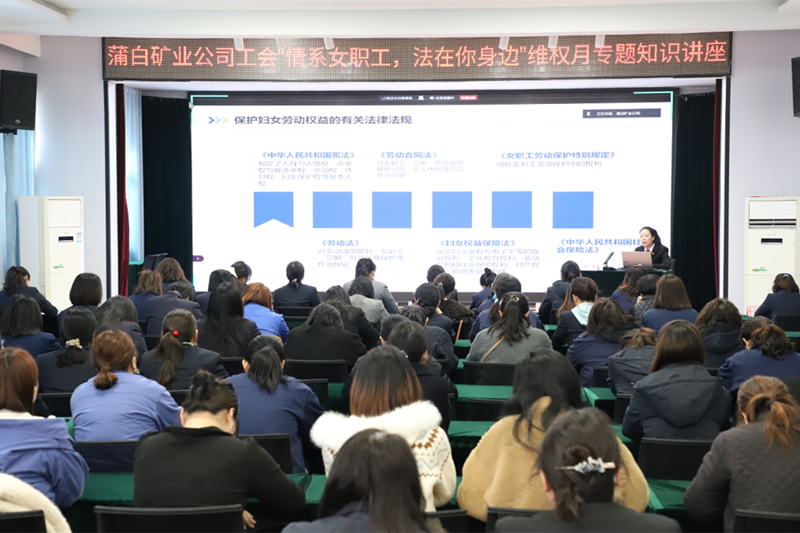 为进一步优化法治化营商环境,延伸司法触角,增强企业女职工的法律意识和维权能力,近日,蒲城法院罕井法庭走进蒲白矿业有限公司,开展了一场以“情系女职工 法在你身边”为主题的普法宣传讲座,将法律知识送到企业女职工身边。
