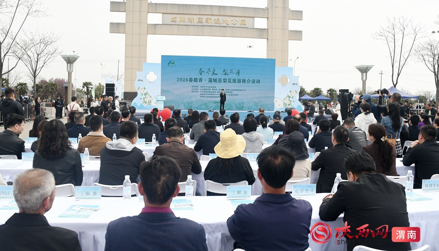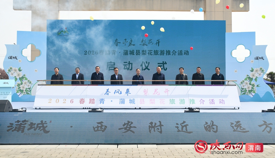 陕西网讯(记者 杨大君 实习记者 弋琛盈)天骄湖畔春风暖,大美蒲城梨花香。3月29日上午11时,2026春踏青·蒲城梨花旅游推介活动在蒲城卤阳湖天骄广场正式开幕。本次活动从3月26日持续至4月6日,由渭南市文化和旅游局指导,中共蒲城县委、蒲城县人民政府、陕西华山旅游集团主办,旨在以梨花为媒、以文化为魂,全面激活文旅春季市场,释放文旅消费活力,擦亮“蒲城·西安附近的远方”文旅品牌,进一步提升蒲城文化旅游知名度和影响力,助力建设全省文旅融合发展知名体验地。