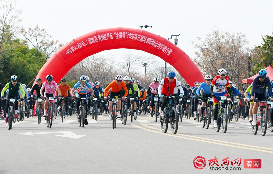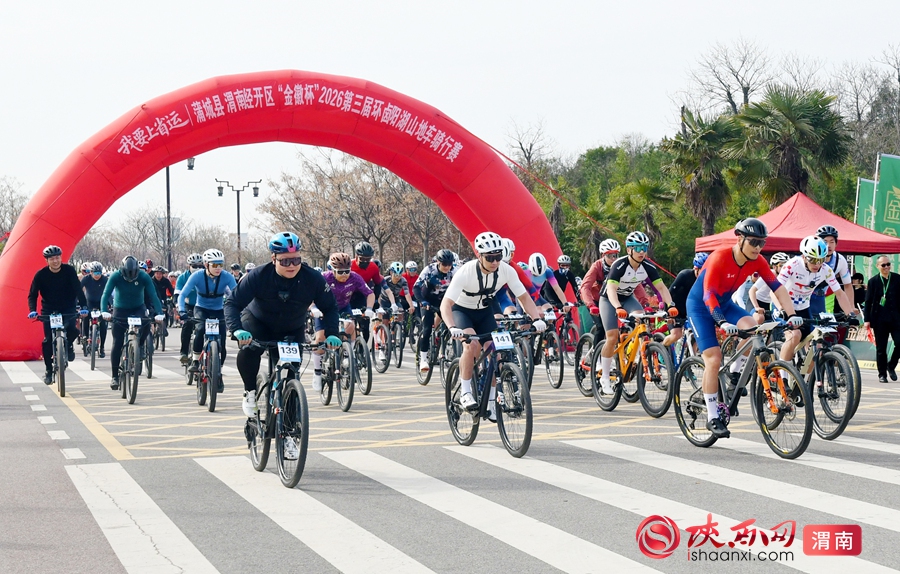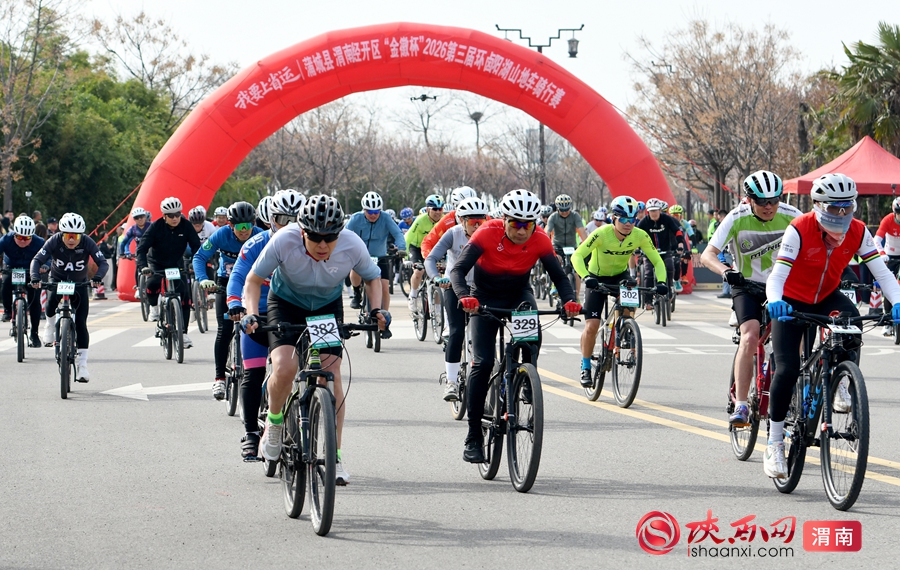 “我要上省运”蒲城县・渭南经开区“金徽杯”2026 第三届环卤阳湖山地车骑行赛激情开赛。记者 杨大君 摄