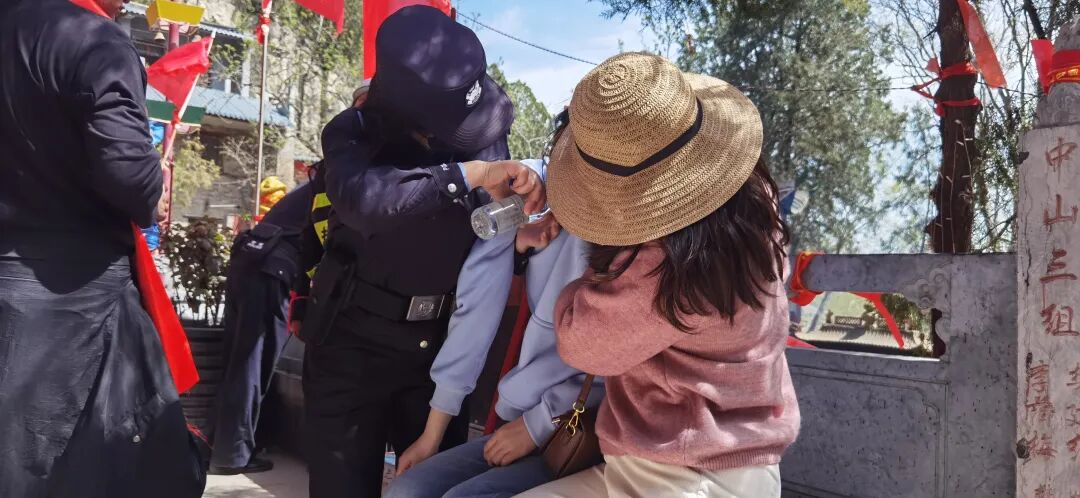 4月5日13时许,执勤民警在人群中发现一名女孩被一男一女搀扶着坐在凳子上,已陷入昏迷状态,现场情况紧急。